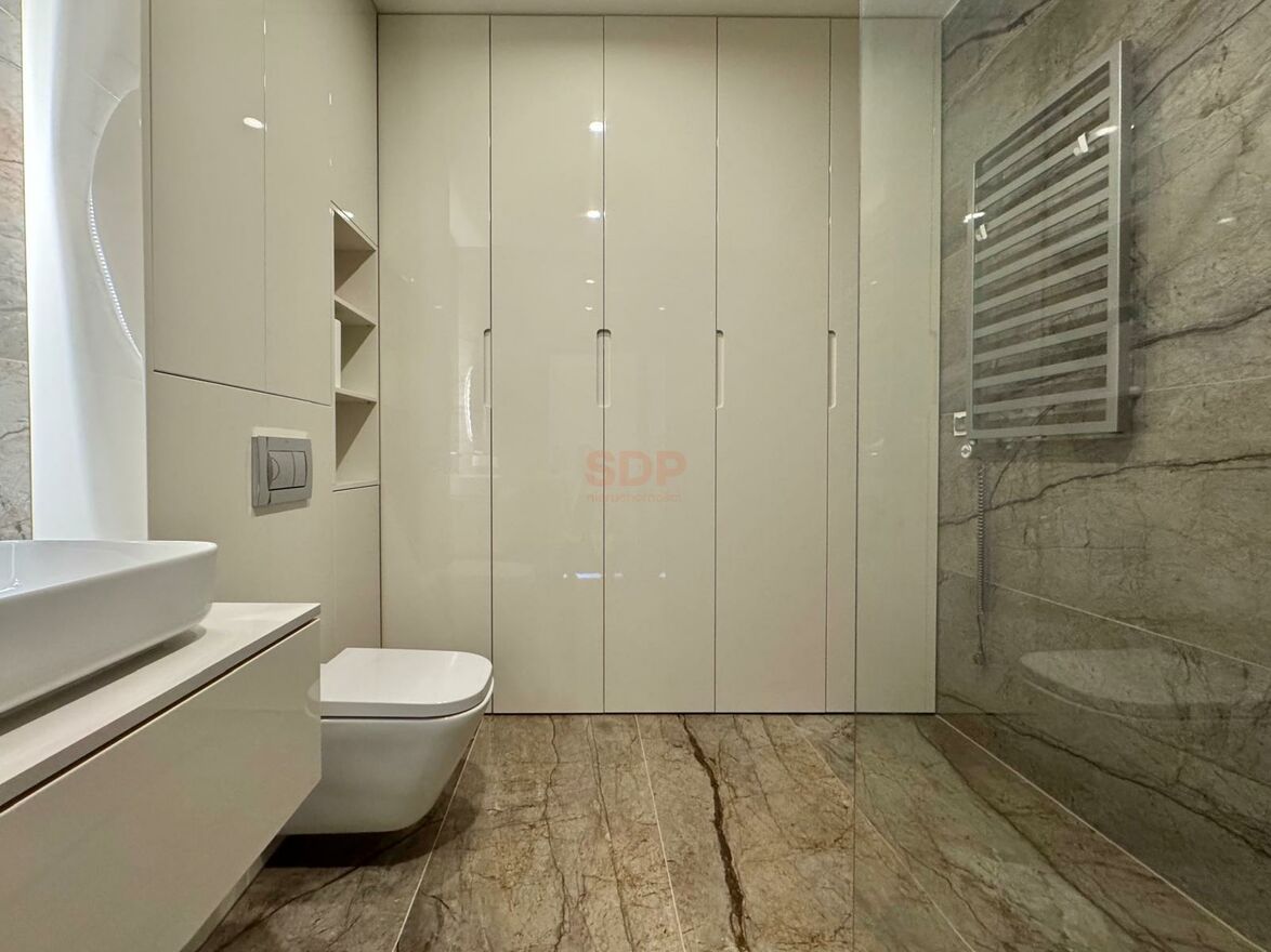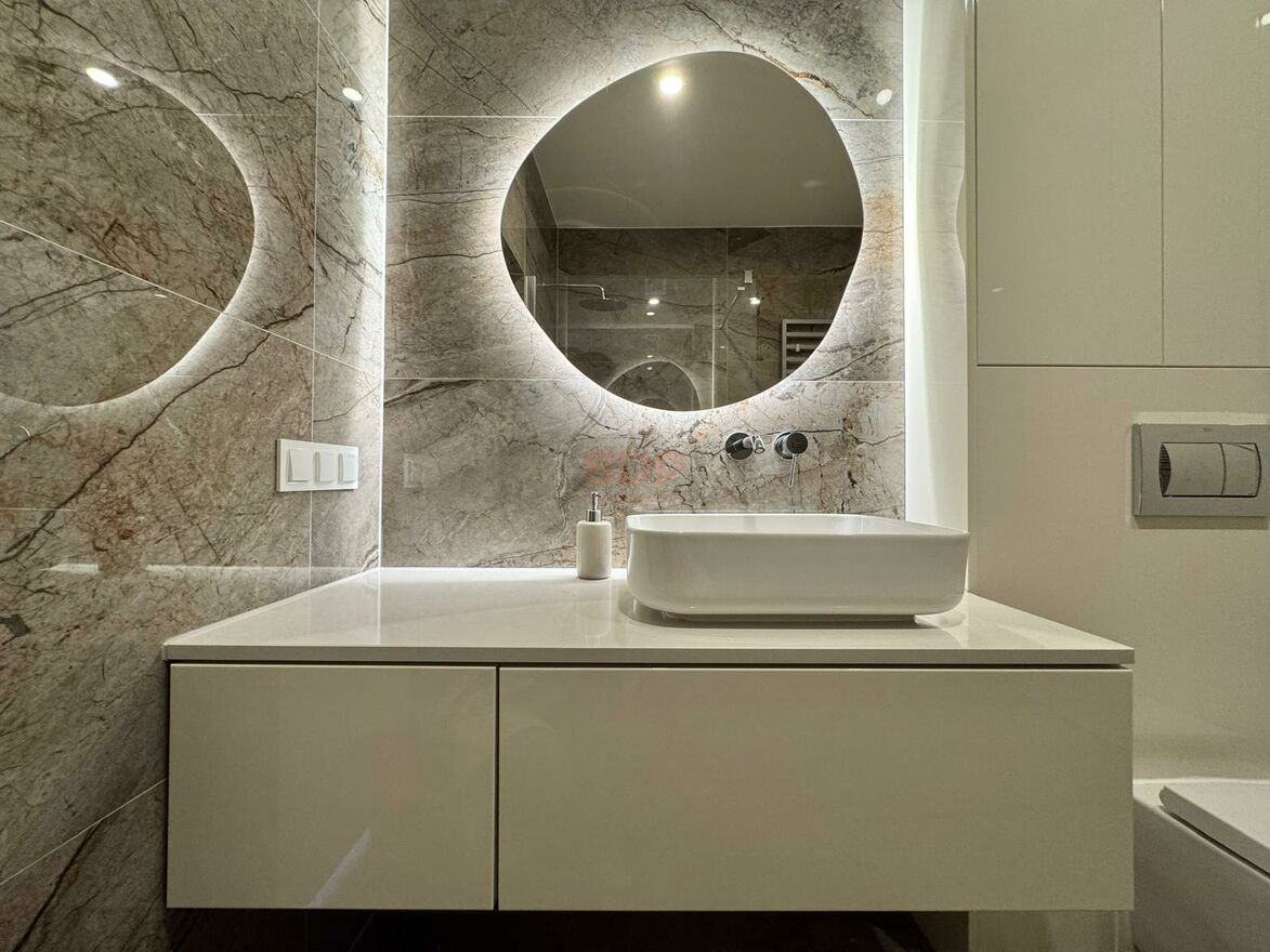 Mieszkanie jest częściowo wykończone: w całym lokalu położono drewnianą podłogę, w łazience oraz kuchni zastosowano armaturę i wyposażenie wysokiej jakości, a ściany pomalowano farbami Flugger, co nadaje wnętrzu elegancki i trwały charakter. Pozostała część prac wykończeniowych (pod klucz) pozostaje do własnej aranżacji to pozwala dostosować mieszkanie do własnych preferencji.
